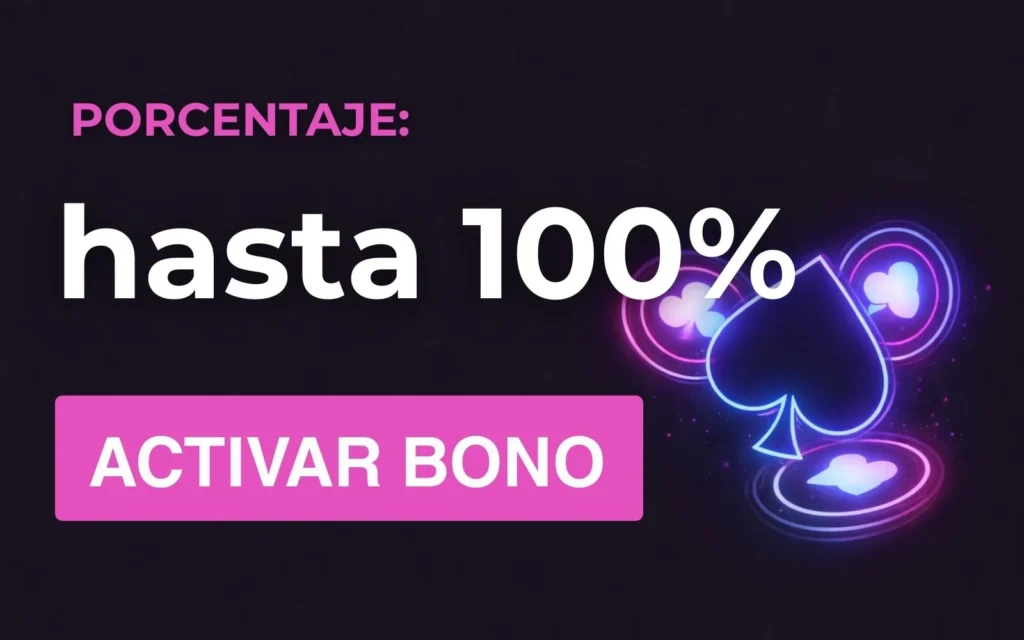 El bono de bienvenida es la promoción principal para nuevos jugadores. Se activa tras completar la inscripción y realizar el primer depósito.